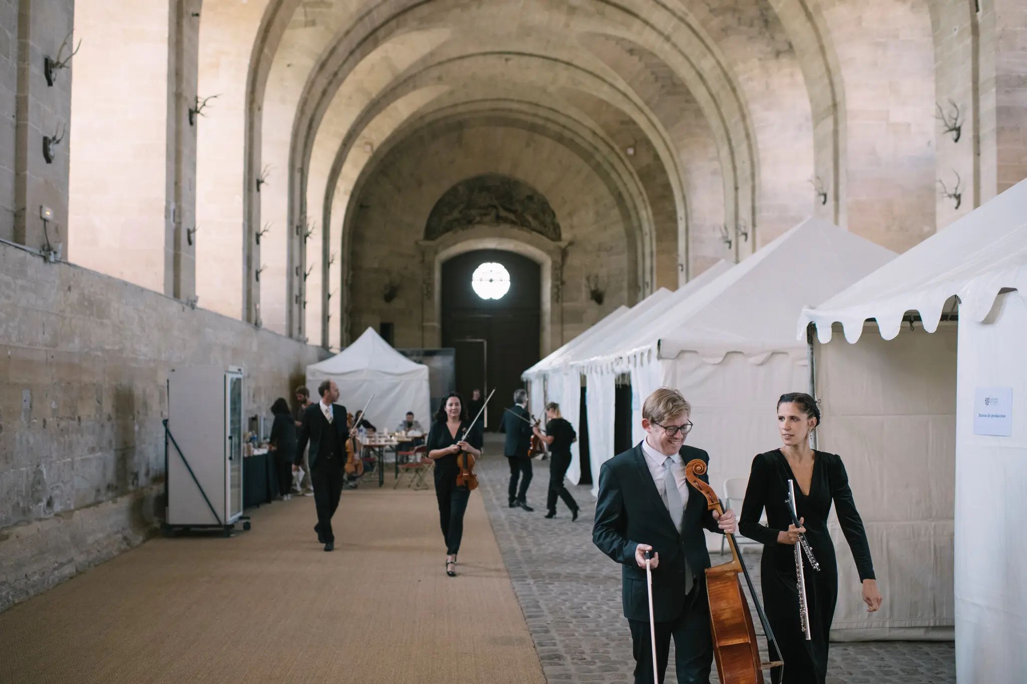 She indicated the Grandes Écuries, an 18th-century architectural masterpiece that still hosts equestrian demonstrations under its majestic dome. During the Coups de Coeur, the stables serve as an auditorium for the event’s main concerts, with the musicians performing on a circular stage and the audience arrayed around them in stadium-style seating.